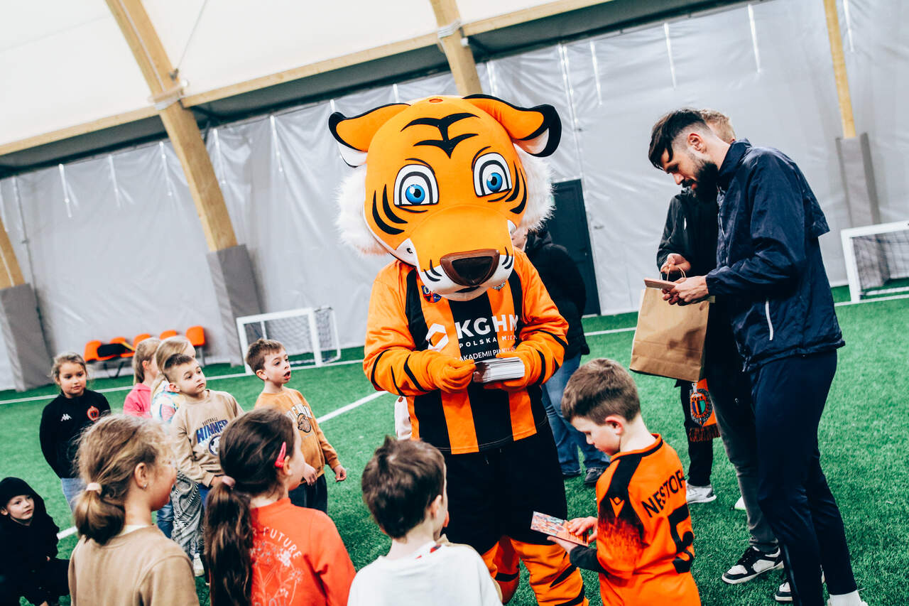 Kubuś Puchatek u Tygryska Z miłą, zapowiedzianą wizytą wpadły do nas dzieci z Przedszkola Niepublicznego Kubuś Puchatek. Na boisku pod balonem, przy udziale trenera Pawła i piłkarza Chrobrego Głogów Mavroudisa Bougaidisa, mieli okazję przekonać się, jak wyglądają treningi najmłodszych w naszej Akademii. 13-03-2025 12:29 autor: ŁJ