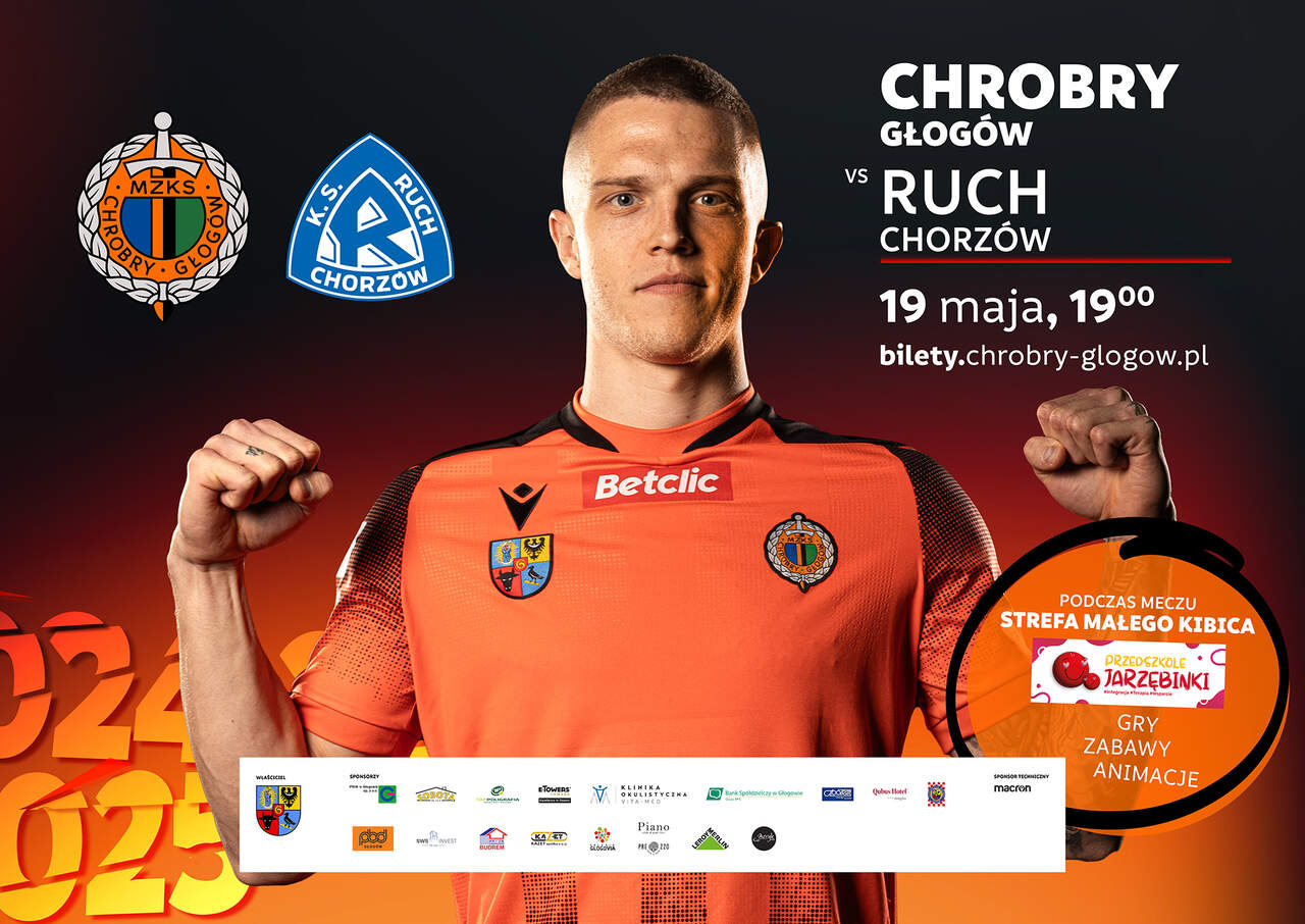 Chrobry Głogów - Ruch Chorzów: bilety Po wygranej z Wartą od razu przystąpimy do kolejnego meczu przy Wita Stwosza. Ostatni domowy występ tego sezonu już w poniedziałek 19 maja o godz. 19.00 - tego dnia Chrobry podejmie Ruch Chorzów. 13-05-2025 01:00 autor: ŁJ Macie możliwość wyboru najprzystępniejszej dla Was formy, choć są takie, które prezentują się szczególnie okazale pod względem cenowym i czasowym. Najatrakcyjniejszą dla Was formą jest sprzedaż on-line na bilety.chrobry-glogow.pl. Nie dość, że jest najtaniej (bilety są w cenie 10 / 20 zł), to bez konieczności wychodzenia z domu i drukowania biletu, bo wystarczy go okazać w telefonie. Nie pozostaje nam nic innego, jak mocno zachęcić do przejścia na bilety.chrobry-glogow.pl i załatwienia sprawy biletu w kilkadziesiąt sekund. Ta sprzedaż potrwa do meczowego poniedziałku do godz. 19.00, czyli do momentu rozpoczęcia spotkania. KUP NA BILETY.CHROBRY-GLOGOW.PL Stacjonarnie prowadzimy przedsprzedaż w kasach pływalni Chrobry w godzinach otwarcia obiektu (godz. 6.15 - 21.00 / 9.00 - 20.30) do dnia poprzedzającego mecz, tj. niedzieli 18 maja. W tym punkcie bilety są w cenach 15 / 25 zł. Oczywiście istnieje też możliwość kupna biletu w dniu meczu: od rana w kasach pływalni Chrobry lub bezpośrednio przed meczem w kasach stadionu, ale nie zalecamy zostawiania tej formalności na później. Wtedy wejściówki będą w cenach 25 / 30 zł. A do tego... kolejki. Sprzedaż normalna w kasach stadionu w dniu meczowym rozpocznie się o godz. 18.00. Bilety - sezon 2024/25 On-line (bilety.chrobry-glogow.pl) 10 zł - bilet ulgowy dla dzieci i młodzieży 8-18 lat, dla emerytów za okazaniem legitymacji, dla posiadaczy Karty Seniora oraz Karty Dużej Rodziny za okazaniem tej karty 20 zł - bilet normalny Przedsprzedaż (kasy pływalni Chrobry do dnia poprzedzającego mecz) 0 zł - do 7 roku życia, uczniowie SMS Chrobry za okazaniem legitymacji szkolnej, posiadacze legitymacji weterana 15 zł - bilet ulgowy dla dzieci i młodzieży 8-18 lat, dla emerytów za okazaniem legitymacji, dla posiadaczy Karty Seniora oraz Karty Dużej Rodziny za okazaniem tej karty 25 zł - bilet normalny Sprzedaż normalna (kasy pływalni Chrobry w dniu meczu) 0 zł - do 7 roku życia 20 zł - bilet ulgowy dla młodzieży 8-18 lat, ulgowy dla emerytów za okazaniem legitymacji, dla posiadaczy Karty Seniora oraz Karty Dużej Rodziny za okazaniem tej karty 30 zł - bilet normalny Sprzedaż normalna (kasy stadionu) 0 zł - do 7 roku życia 20 zł - bilet ulgowy dla młodzieży 8-18 lat, ulgowy dla emerytów za okazaniem legitymacji, dla posiadaczy Karty Seniora oraz Karty Dużej Rodziny za okazaniem tej karty 30 zł - bilet normalny