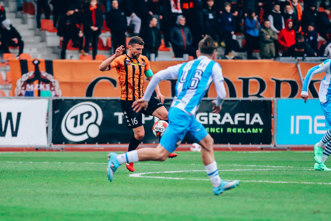 CO ZA FINISZ! Jeszcze w 88 minucie utrzymywał się bezbramkowy remis. Później 1:0, 1:1 i po bramce Dawida Hanca w doliczonym czasie 2:1, a co za tym idzie wyczekiwany komplet punktów Chrobrego! 09-03-2024 05:12 autor: ŁJ To był mecz walki. Obie ekipy w tabeli są obok siebie, mają po tyle samo punktów, i to było widać w pierwszej połowie. Chrobry może żałować sytuacji z 9 minuty, kiedy to po wrzutce z prawej strony główkował Mikołaj Lebedyński, ale futbolówka przeszła obok słupka. Później odpowiedzieli goście. Nieszczęśliwie dla głogowian mogła zakończyć się strata na własnej połowie, ale to uderzenie Patryka Walczaka było niecelne. Druga część bardzo długo podobnie wyglądała do pierwszej. Nie było czystych sytuacji, a optyczną przewagę posiadała Stal. Mimo tego można było odnieść wrażenie, że im bliżej końca, tym groźniejszy z przodu staje się Chrobry. W 77 minucie po strzale z ostrego kąta w wykonaniu Mateusza Ozimka interweniował bramkarz Stali, a dosłownie po chwili groźnie główkował Albert Zarówny. Kiedy wydawało się, że spotkanie zakończy się bezbramkowym remisem, zrobiło się widowisko przez duże „W”. W piłce zawsze warto wyczekać do samego końca, bo nigdy nie wiadomo, co może się wydarzyć. A wydarzyło sporo. W 89 minucie pięknym strzałem z kilkunastu metrów prowadzenie Chrobremu dał Kacper Tabiś. Radość z tego gola nie trwała jednak długo, bo w 90 minucie rywale skutecznie odpowiedzieli. Damiana Węglarza pokonał Sebastien Thill. Na tym nie koniec, bo ten należał do Pomarańczowo-Czarnych, którzy najpierw wywalczyli rzut wolny, a następnie - po strzale Dawida Hanca i rykoszecie - cieszyli się ze zwycięskiego gola. Chrobry z bardzo ważnym kompletem punktów, który dodatkowo nabiera na znaczeniu wobec tak szalonego finiszu! Następny mecz równo za tydzień. W sobotę 16 marca o godz. 15.00 Chrobry zmierzy się na stadionie w Tychach z miejscowym GKS-em i tym występem nasza drużyna rozpocznie serię pojedynków z rywalami z czołówki tabeli. Po tym spotkaniu w lidze nastąpi dwutygodniowa przerwa reprezentacyjna, po której na stadion przy Wita Stwosza wrócimy w sobotę 30 marca na mecz z Wisłą Kraków.