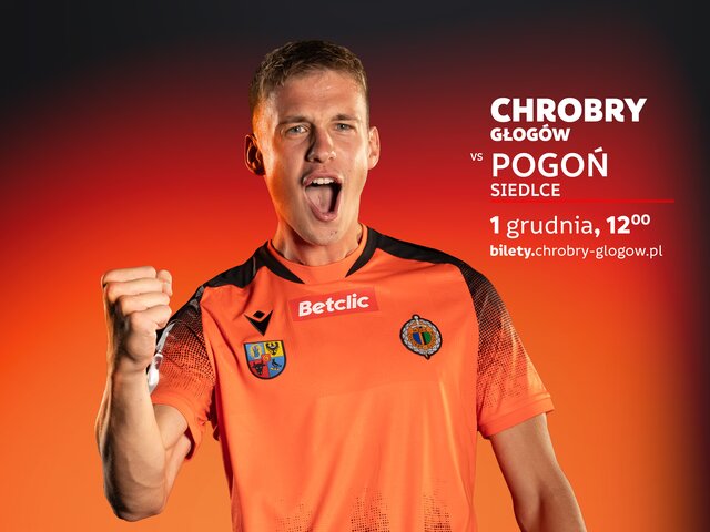 DZIEŃ MECZU: Chrobry Głogów - Pogoń Siedlce W ostatnim domowym meczu tego roku na Wita Stwosza Chrobry podejmuje Pogoń Siedlce. Spotkanie 18 kolejki Betclic 1 Ligi rozpocznie się o godz. 12.00. 01-12-2024 12:03 autor: ŁJ To już kolejny mecz, o którym można powiedzieć, że przysłowiowo ma większą wartość od trzech punktów. Pogoń Siedlce zamyka ligową tabelę i ma o cztery punkty mniej od Chrobrego. Głogowianie powalczą więc o powiększenie tej przewagi, a przy okazji na samym finiszu mogą opuścić strefę oznaczoną czerwonym kolorem. W jednym z piątkowych spotkań 18 serii swój mecz przegrała Odra Opole, a to szansa dla Pomarańczowo-Czarnych, którzy w przypadku zwycięstwa przeskoczą opolan w tabeli. Chrobry nie może wygrać od czterech spotkań, ale ostatnie zwycięstwo odniósł z innym rywalem z tej części tabeli – Kotwicą Kołobrzeg. Jak na razie głogowianie nie przegrali żadnego ze spotkań z zespołami zajmującymi obecnie miejsca 18-13, a dodatkowo pierwszy pojedynek z Pogonią w Siedlcach zakończył się ich wygraną 2:1. Ta statystyka może okazać się kluczowa i trzeba ją podtrzymać! DOWIEDZ SIĘ WIĘCEJ O NASZYM RYWALU: 29-11-2024 Nasz rywal: Pogoń Siedlce Mecz, który trzeba wygrać. Do Głogowa przyjeżdża Pogoń Siedlce, o której piszemy więcej w przedmeczowym tekście. BILETY: Bilety na mecz do momentu rozpoczęcia spotkania dostępne są na bilety.chrobry-glogow.pl w cenach przedsprzedażowych: bilety ulgowe 10 zł / bilety normalne 20 zł). Kasa stadionu otwarta zostanie na godzinę przed spotkaniem, a w niej bilety będą w cenach: ulgowe 20 zł / normalne 30 zł. Dzieci do 7 roku życia na stadion wchodzą za darmo. 25-11-2024 Chrobry Głogów - Pogoń Siedlce: bilety W niedzielę ostatni tegoroczny występ na stadionie w Głogowie. O godz. 12.00 zagramy z Pogonią Siedlce. Trwa sprzedaż biletów na ten mecz.