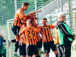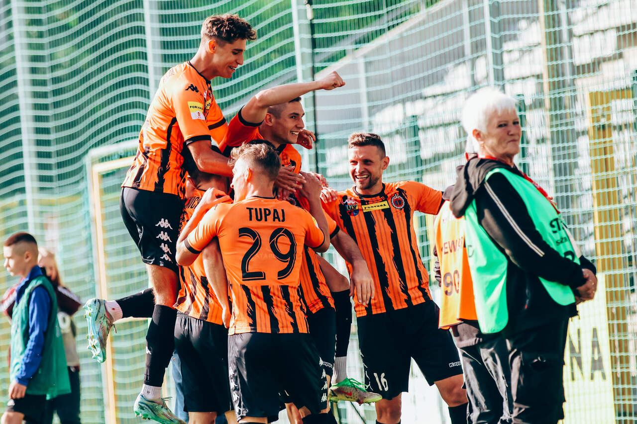 Cenny, bo derbowy punkt Po meczu wypełnionym walką Chrobry zdobywa punkt w derbowym starciu z Miedzią Legnica. Bohaterem doliczonego czasu gry został Damian Węglarz dwukrotnie stopujący rywali przed prowadzeniem. 30-09-2023 05:14 autor: ŁJ Już w pierwszych minutach w tym meczu działo się dużo. W 2 minucie przed szansą stanęli gospodarze, ale Marcel Mansfeld uderzył niecelnie. 120 sekund później odpowiedział Chrobry, tyle że skutecznie. Piłkę w pole karne posłał z lewej strony Dawid Hanc, a to wykończył nie kto inny, jak będący w wysokiej dyspozycji strzeleckiej Mikołaj Lebedyński. Głogowianie szybko objęli więc prowadzenie i ani myśleli go oddać, skutecznie broniąc dostępu do własnej bramki, dodatkowo mając przy tym szansę Bartosza Biela. Korzystny dla Chrobrego wynik utrzymał się do przerwy, ale po niej Miedź dość wyraźnie przejęła inicjatywę. Zanim jednak, mogło być… 0:2. W 51 minucie na bezpośredni strzał z rzutu wolnego, mimo ostrego kąta, zdecydował się Patryk Mucha, lecz golkiper legniczan przerzucił futbolówkę ponad poprzeczką. W 55 minucie zrobiło się jednak 1:1. Po dośrodkowaniu Damiana Węglarza pokonał Marcel Mansfeld. Po tym wszystkie emocje przeniosły się na doliczony czas gry. Drugą żółtą kartkę obejrzał wtedy Kamil Wojtyra i Chrobry dogrywał w dziesięciu. Chwilę przed tym gospodarze stanęli przed świetną szansę, ale kapitalnie po strzale Krzysztofa Drzazgi interweniował Damian Węglarz, odbijając piłkę na rzut rożny. A moment po czerwonej, znów na pierwszy plan wysunął się głogowski golkiper, którego pokonać starali się i Nemanja Mijuskovic i Patryk Pierzak. Nic z tego, Damian Węglarz zachował zimną krew i zapewnił Pomarańczowo-Czarnym cenny punkt. Następny mecz już w piątek 6 października. Na stadionie przy Wita Stwosza Pomarańczowo-Czarni podejmą były klub trenera Piotra Plewni - Odrę Opole. Początek o godz. 18.00.