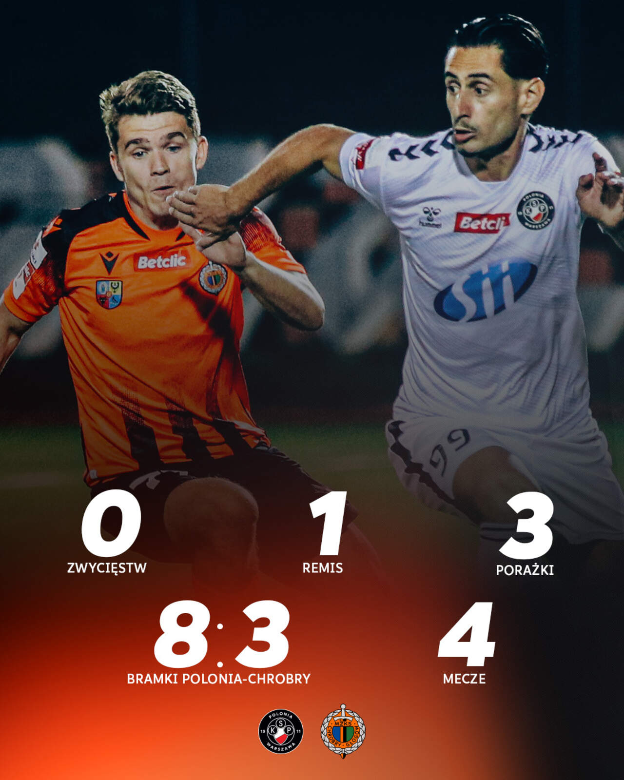 Nasz rywal: Polonia Warszawa Polonia Warszawa sobotnim przeciwnikiem Chrobrego w Betclic 1 Lidze. W artykule przybliżamy naszego rywala. 28-03-2025 09:15 autor: ŁJ Niepokonani w tym roku Choć Polonia ten sezon zaczęła od jednego punktu w pierwszych sześciu meczach, dziś jest piąta z dużymi szansami na baraże. Co ważniejsze dla jej dyspozycji, w tym roku nie przegrała ani razu. W pięciu tegorocznych spotkaniach zdobyła 11 punktów. Za porażkę można co prawda uznać 1:2 z Puszczą Niepołomice w 1/4 finału Pucharu Polski i odpadnięcie z dalszej rywalizacji, ale nawet w tym pojedynku po regulaminowym czasie gry był remis, a o wszystkim zadecydowała dogrywka. Biorąc pod uwagę samą ligę w tym roku, tylko w jednym spotkaniu „Czarne Koszule” nie zdobyły bramki, w pozostałych najczęściej strzelając ich dwie lub trzy. Przed Chrobrym i jego obroną ciężki pojedynek z zespołem, który ma szansę nawiązać do swoich najlepszych czasów. A jeszcze w 2000 roku świętował mistrzostwo Polski, po raz ostatni na najwyższym poziomie będąc w 2013 roku. Trener rywali: Mariusz Pawlak Na zaplecze Polonię wprowadził trener Rafał Smalec, ale po złym starcie już w sierpniu dokonywano zmian. Ostatecznie zespół przejął wtedy jej były zawodnik Mariusz Pawlak. Pod wodzą tego szkoleniowca zespół ze stolicy na 21 meczów wygrał w trzynastu (to daje średnią punktową 2.05). 53-letni Mariusz Pawlak w przeszłości był trenerem m.in. Olimpii Grudziądz, Wisły Puławy, GKS-u Bełchatów i Chojniczanki Chojnice. W swojej karierze ma już dwa awanse, z Chojniczanką do pierwszej, a z Wisłą do drugiej ligi. Kadra rywali: najlepszy strzelec pauzuje Groźną bronią Polonii jest Łukasz Zjawiński. 16 bramek, jakie zdobył w tym sezonie Betclic 1 Ligi, to jeden z najlepszych wyników w całej lidze. W tej klasyfikacji o jedno trafienie wyprzedza go tylko Angel Rodado z Wisły Kraków. I tu ważna informacja: przeciwko Chrobremu nie zagra, bo w ostatniej kolejce otrzymał dwie żółte kartki, po tym ma ich osiem, a to oznacza mecz przerwy. Innymi podstawowymi zawodnikami Polonii są Michał Grudniewski, Mateusz Kuchta, Bartłomiej Poczobut, Przemysław Szur czy Ernest Terpiłowski. Terpiłowski w swoim CV ma 53 rozegrane spotkania w Ekstraklasie, ale pod tym względem najwięcej występów - 58 w barwach Lechii Gdańsk - ma Ilkay Durmus z tureckim i niemieckim obywatelstwem. Ciekawostki: Właścicielem i prezesem Polonii jest francusko-polski przedsiębiorca Gregoire Nitot, założyciel i dyrektor generalny Sii Polska. Największymi osiągnięciami Polonii są dwukrotne mistrzostwo Polski (1946, 1999/2000), trzykrotne wicemistrzostwo, Puchar Polski (1951/52, 2000/01), Puchar Ligi (1999/2000), Superpuchar Polski (2000) oraz 1/2 finału UEFA Intertoto (1999). Tu zagramy Fot. 1liga.org Fot. laczynaspilka.pl Klubowe powiązania - Obsada sędziowska Sędzia główny: Piotr Idzik - Poznań Sędziowie asystenci: Maciej Cebulski, Szymon Filip Sędzia techniczny: Szymon Rutkowski Sędziowie VAR: Marcin Szczerbowicz, Dawid Golis Z Polonią dopiero po raz drugi Chrobry w piątym w historii meczu z Polonią powalczy o pierwsze z nią zwycięstwo. Do tej pory trzykrotnie wygrywały "Czarne Koszule", a jedno spotkanie zakończyło się remisem. W tym sezonie będzie już trzecim obustronnym meczem, bo we wrześniu doszło do dwóch: w Betclic 1 Lidze i Pucharze Polski. Oba rywale wygrali 2:1. Liczba meczów Chrobry - Polonia: 4 Zwycięstw Chrobrego: 0 Remisów: 1 Zwycięstw Polonii: 3 Bramki Chrobry-Polonia: 3:8