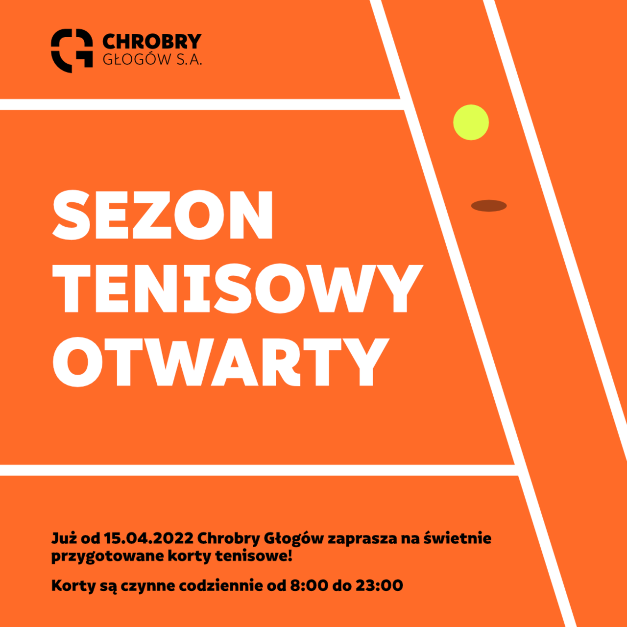 Startuje sezon na kortach! Po blisko miesiącu przygotowań sezon tenisowy na kortach zostanie zainaugurowany już 15.04.2022. 14-04-2022 01:40 autor: MK / zdjęcia: MK Już 15 kwietnia otwieramy korty tenisowe na sezon 2022. Będzie mozna z nich korzystać od 8:00 do 23:00 codziennie. Korty są oświetlone i zostały świetnie przygotowane przez firmę, która ma bogate doświadczenie przy remontach takich obiektów. Przed sezonem wymieniona została cała nawierzchnia. 80 ton nowej mączki zostało ułożone, jako nowa 5 centymetrowa nawierzchnia. Oczyszczone zostały odpływy i zamontowane nowe linie i siatki. Korty można rezerwować w portierni Hali Widowiskowo-Sportowej im. Matuszaka tel. 76 835 55 76