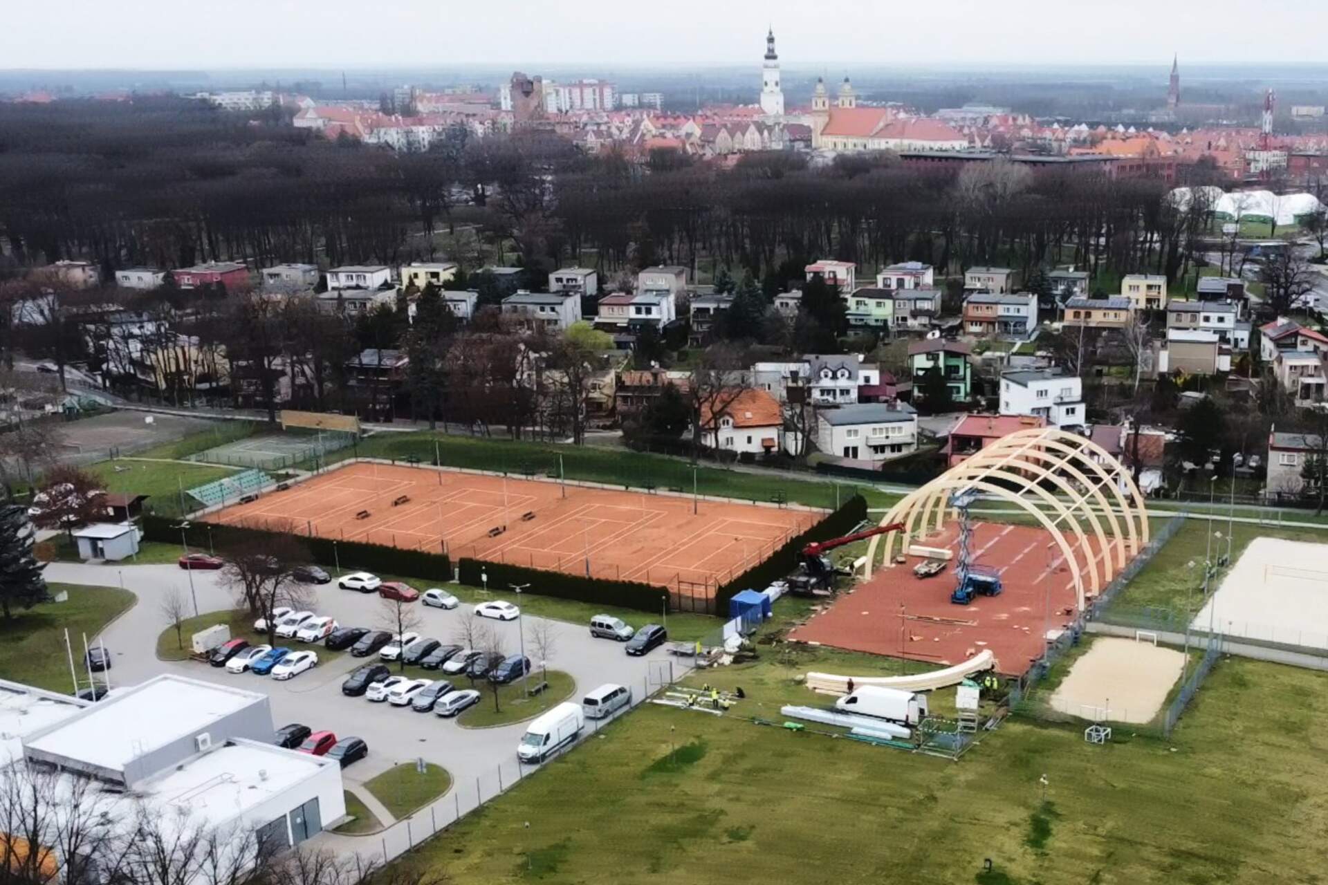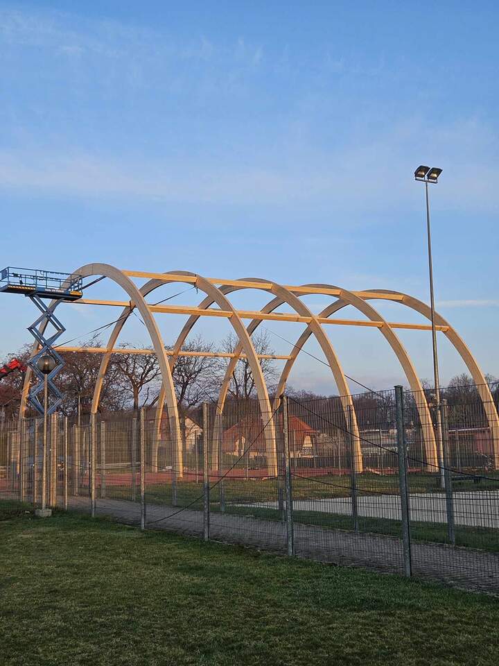 Drewniane dźwigary postawione! Zakończył się 1 etap budowy boiska zadaszonego. 15-03-2024 07:32 autor: MK / MK / zdjęcia: MK/Q Po 3 dniach od startu prac firma Quortex Sp. z o. o. z Gorzowa Wielkopolskiego wykonała pierwszy etap pracy przy "Budowa boiska sportowego o wymiarach 20x40 m z zadaszeniem łukowym z zewnętrzną podziemną instalacją zasilającą". Drewniane dźwigary są osadzone i czekają na nakrycie materiałem PVC. Więcej o inwestycji TUTAJ Zadanie realizowane jest w ramach programu Ministerstwa Sportu i Turystyki "Program Rozwoju Infrastruktury Piłkarskiej edycja 2022" Zadanie dofinansowane w ramach Programu Rozwoju Infrastruktury Piłkarskiej edycja 2022 organizowanego przez Ministerstwo Sportu i Turystyki.