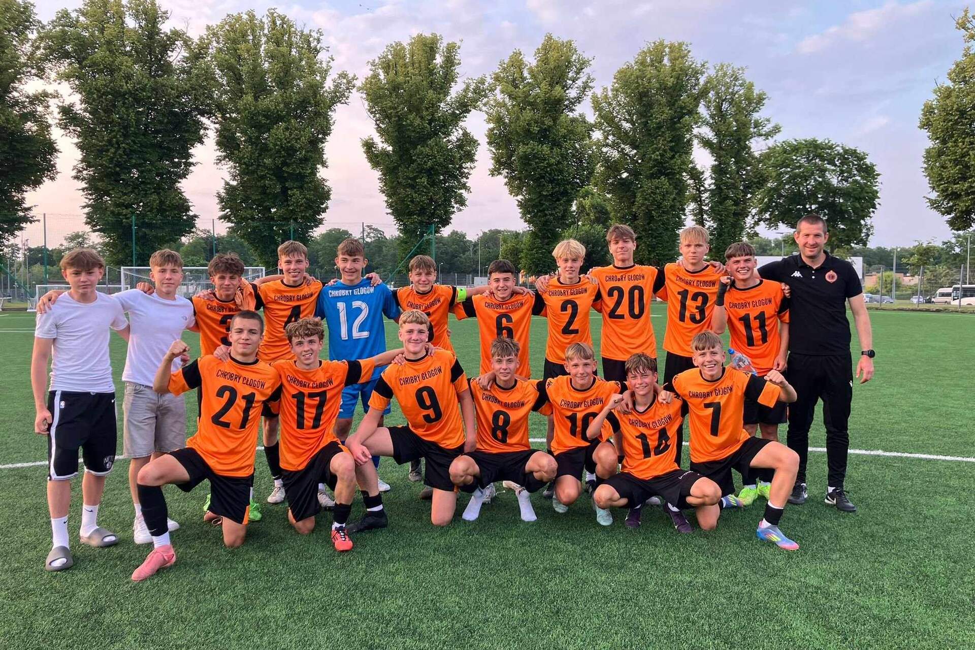 Chrobry U-15 wygrał ligę! Chrobry U-15 Głogów mistrzem I Wojewódzkiej Ligi Trampkarzy. 20-06-2025 12:39 autor: ŁJ Pomarańczowo-Czarni w ostatniej, środowej kolejce pokonali Parasol Wrocław 3:1 po dwóch golach Adama Żuchowskiego oraz jednym Jakuba Muszyńskiego i cieszą się z końcowego zwycięstwa. W 14 meczach zdobyli 28 punktów, o trzy więcej od drugiego w tabeli Zagłębia Lubin. - Sezon 2024/2025 zakończył się dla naszej drużyny dużym sukcesem: wygraliśmy ligę, potwierdzając dobrą pracę wykonaną przez cały zespół - komentuje trener Chrobrego U-15 Grzegorz Nowak. - Choć reorganizacja rozgrywek Centralnej Ligi Juniorów uniemożliwiła nam udział w barażach o CLJ już w poprzedniej rundzie, to drużyna udowodniła, że jest gotowa na grę na najwyższym poziomie. Mimo kilku przeciętnych spotkań, które pokazały potrzebę większej regularności, zespół zaprezentował wysoki potencjał, z którego możemy być dumni. Trener głogowskiej drużyny cieszy się też z obecności w niej rokujących piłkarzy. - Na szczególną uwagę zasługuje indywidualny rozwój zawodników - mówi Grzegorz Nowak. - Ich progres był zauważalny i systematyczny. Mamy w drużynie zawodników, którym przyglądamy się bardzo uważnie i głęboko wierzymy, że ich dalszy rozwój przyniesie realne korzyści dla całej Akademii. Dziękuję zawodnikom za zaangażowanie, rodzicom za nieustanne wsparcie, kadrze zarządzającej za zaufanie i profesjonalne podejście w codziennej pracy. Gratulacje dla całej drużyny!