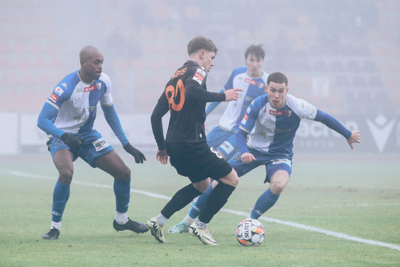 Bardzo cenne punkty zostają w Głogowie Bramka Patryka Szwedzika na wagę trzech punktów. 01-12-2024 01:54 autor: ŁJ Mecz został poprzedzony minutą ciszy ku pamięci zmarłego w dniach poprzedzających spotkania Jana Furtoka. W reprezentacji Polski rozegrał 36 meczów, zdobywając 10 bramek. W biało-czerwonych barwach wziął też udział w mistrzostwach świata w 1986 roku. Po zremisowanym meczu z Odrą Opole trener Łukasz Becella nic nie zmieniał w składzie, więc Pomarańczowo-Czarni zaczęli tę samą jedenastką. Spotkanie od początku było bardzo wyrównane i nie obfitowało w sytuacje. Z czasem te się pojawiały, ale najpierw ze strony siedlczan. W 30 minucie Dawid Arndt obronił strzał Damiana Szuprytowskiego. W samej końcówce goście mieli ponadto stały fragment, ale wtedy użytek z niego zrobili głogowianie. Przechwycili piłkę, a po dograniu Kacpra Tabisia samodzielnie na bramkę ruszył Patryk Szwedzik. Po długim rajdzie wygrał pojedynek z próbującym interweniować Mateuszem Pruchniewskim i od 45 minuty Chrobry prowadził 1:0. Z golem do szatni zszedł na przerwę. Po zmianie stron Chrobry mając korzystny wynik nabrał jakby więcej pewności i był groźniejszy z przodu. W 70 i 72 minucie mógł zrobić użytek z którejś z wrzutek w wykonaniu Jakuba Kuzdry i Roberta Mandrysza. Zamykali je Mikołaj Lebedydyński i Patryk Mucha, lecz ich uderzenia były niecelne. Później jeszcze przed szansami stawali Bartosz Biel z Albertem Zarówny, ale i po tych strzałach piłka nie zmierzała w światło bramki, choć na podstawie tego skromne 1:0 zdawało się być coraz pewniejsze. Pewnie było też w obronie. Goście co prawda próbowali coś zdziałać, jak w 84 minucie, lecz Jakub Lutostański posłał piłkę obok bramki. Ostatecznie po końcowym gwizdku z bardzo cennych trzech punktów cieszyli się Pomarańczowo-Czarni, którzy tym samym przerwali serię czterech występów bez wygranej. W tym roku Chrobry jeszcze tylko raz zagra o powiększenie punktowego dorobku. Po spotkaniu z ostatnim zespołem tabeli nadchodzi czas na pojedynek z pierwszym - Bruk-Betem Termaliką Nieciecza. Mecz 19 kolejki Betclic 1 Ligi w sobotę 7 grudnia o godz. 17.30 na stadionie w Niecieczy.