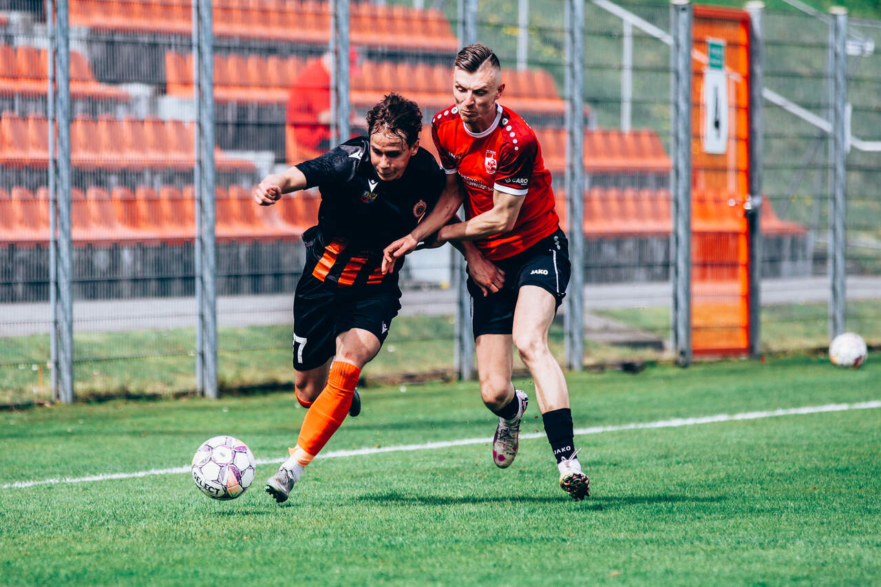 Chrobry II Głogów - Słowianin Wolibórz 2:3 Zabrakło niewiele... Chrobry II po stracie gola w 90 minucie przegrywa ze Słowianinem Wolibórz 2:3 w 24 kolejce Kolei Dolnośląskich 4 Ligi. 13-04-2025 03:56 autor: ŁJ Lider sprzed rozpoczęcia kolejki szybko wyszedł na prowadzenie, bo już w 3 minucie. Chrobry sprawnie na to odpowiedział. W 15 minucie zrobił to wykańczający akcję uderzeniem z pola karnego Ziemowit Witczak. Tym samym na remisie pierwsza część dobiegła końca. Początek drugiej należał do głogowian. W 53 minucie uderzył Mateusz Machaj, ale golkiper Słowianina skierował futbolówkę na obramowanie bramki. Głową poprawił to Sebastian Francus i po tym Chrobry był na prowadzeniu. Trwało to tylko kilka minut, bo w 61 minucie rywale doprowadzili do wyrównania. Sprawy skomplikowały się najbardziej w ostatnim kwadransie. W 75 minucie drugą żółtą kartką ukarano Mateusza Machaja. Grający z przewagą zawodnika Słowianin już w doliczonym czasie przechylił szalę na swoją korzyść, wykorzystując do tego rzut rożny. CHROBRY II GŁGOÓW – SŁOWIANIN WOLIBÓRZ 2:3 (1:1) 0:1 Szuba 3 (k) 1:1 Witczak 15 2:1 Francus 53 2:2 Szuba 61 2:3 Trzepacz 90 CHROBRY II: Gawłowski – Janik, Buszewski (46 Biliński), Marcinkowski, Wojciechowski (77 Antkowiak), Francus, Wojtal (74 Tworzydło A.), Grzelak (65 Tworzydło K.), Bartecki, Witczak (87 Cichy), Machaj. ŻÓŁTE KARTKI (CHROBRY II): Buszewski, Grzelak, Marcinkowski, Machaj, Tworzydło K. Gawłowski, Tworzydło A. CZERWONE KARTKI: Machaj 75 (Chrobry II – za drugą żółtą).