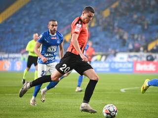 Bolesna porażka w Chorzowie Cztery w pierwszej, jedna w drugiej połowie. Chrobry przegrywa z Ruchem Chorzów 0:5. 07-11-2024 07:49 autor: ŁJ Chrobry zaczął z kilkoma zmianami w składzie. Po pauzie za kartki powrócił do niego Sebastian Bonecki, a pierwszy raz w jedenastce od 20 sierpnia znalazł się Szymon Lewkot. Mecz rozpoczął się najgorzej, jak tylko mógł. Chrobry popełnił błąd na własnej połowie, stracił piłkę, a tę do bramki skierował były gracz Pomarańczowo-Czarnych Miłosz Kozak. Co prawda szybko mógł odpowiedzieć Sebastian Bonecki, po którego strzale był tylko rzut rożny, ale później do głosu regularnie dochodzili gospodarze. Nic dziwnego. Sytuacja z 14 minuty, w której po wybiciu Chrobrego z dystansu uderzał Szymon Szymański, a przypadkowo odbita od Somy Novothnego futbolówka zmyliła Dawida Arndta i zatrzepotała w siatce, musiała całkowicie zabrać resztki wiary. Pokazały to kolejne wydarzenia. W 19 minucie na 3:0 podwyższył Mo Mezghrani, a już w 25 minucie po bramce Denisa Ventury było 4:0. To rzadko spotykany obrót spraw. Głogowianie mieli jeszcze okazje, choćby za sprawą Patryka Szwedzika, gdy uderzoną przez niego piłkę odbił Martin Turk, jednak wobec widniejącego na tablicy wyniku trudno było oczekiwać wielkiego zrywu. Po pierwszej połowie "Niebiescy" prowadzili z Chrobrym 4:0. fot. 400mm.pl fot. 400mm.pl Po zmianie stron po raz drugi w tym meczu mógł wstrzelić się Miłosz Kozak, ale tym razem przeszkodą okazała się poprzeczka. Pomarańczowo-Czarni tę odsłonę zaczęli z podwójną zmianą, bo na boisko weszli Albert Zarówny z Pawłem Tupajem, lecz widniejące 4:0 cały czas było zbyt obciążające, aby próbować coś zdziałać. W końcówce zdziałali więc mający spory luz miejscowi. Na kwadrans przed końcem Dawida Arndta pokonał Jakub Myszor. Chrobrego mógł dobić Mateusz Chmarek, tyle że trafił w słupek. Za pozytyw, mimo niesprzyjających okoliczności, można za to uznać debiut kolejnego zawodnika z klubowej Akademii - Kamila Grzelaka. Patryka Muchę zmienił już przy prowadzeniu Ruchu 5:0 i na takim rezultacie ten pojedynek dobiegł końca. Fot. 400mm.pl