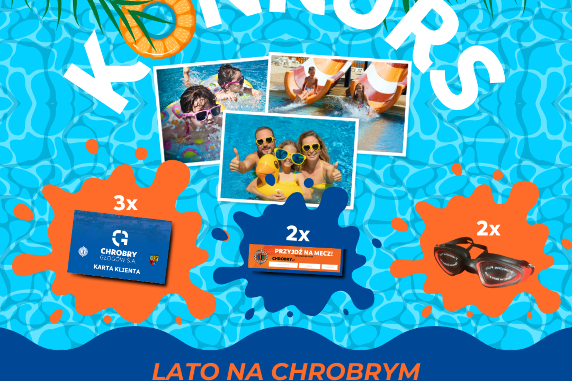 Ogłaszamy Konkurs "Lato na Chrobrym"! Najlepsze Wspomnienie Lata na Basenach Odkrytych Chrobry Głogów! 01-08-2024 08:31 autor: Pływalnia Chrobry Głogów S.A. serdecznie zaprasza wszystkich Klientów do udziału w naszym wakacyjnym konkursie fotograficznym! Chcemy, abyście podzielili się z nami swoimi najwspanialszymi wspomnieniami z letnich dni spędzonych na naszych Basenach-zewnetrznych Chrobry Głogów. Jak wziąć udział? 1. *Zrób zdjęcie*: Uchwyć swoje najlepsze wakacyjne wspomnienie na basenach odkrytych Chrobry Głogów. 2. *Prześlij zdjęcie*: Wyślij je drogą elektroniczną na adres e-mail: [sekretariat@chrobry-glogow.pl](mailto:sekretariat@chrobry-glogow.pl) do dnia 31 sierpnia 2024 roku. W tytule maila wpisz: "Konkurs Lato na Chrobrym". 3. *Podaj dane kontaktowe*: W e-mailu podaj swoje imię, nazwisko, adres e-mail oraz numer telefonu kontaktowego. Nagrody Dla zwycięzców przygotowaliśmy fantastyczne nagrody: *I miejsce*: Karnet na pływalnię o wartości 300 zł, 2 bilety na mecz Chrobry Głogów oraz gadżet pływacki. *II miejsce*: Karnet na pływalnię o wartości 200 zł oraz gadżet pływacki. *III miejsce*: Karnet na pływalnię o wartości 100 zł. Harmonogram *Nadsyłanie prac*: 1 sierpnia - 31 sierpnia 2024 r. *Ogłoszenie wyników*: 15 września 2024 r. na stronie internetowej Pływalni Chrobry Głogów oraz na naszym profilu Facebook. Szczegóły Pełen regulamin konkursu znajdziesz [tutaj] Zapraszamy wszystkich do udziału w konkursie i dzielenia się swoimi najlepszymi wakacyjnymi chwilami! Nie przegapcie szansy na wygranie atrakcyjnych nagród i stworzenie niezapomnianych wspomnień. Do zobaczenia na basenach! Kontakt E-mail: sekretariat@chrobry-glogow.pl Telefon: 504 591 769 Pływalnia Chrobry Głogów S.A. Ul. Rudnowska 17B, 67-200 Głogów