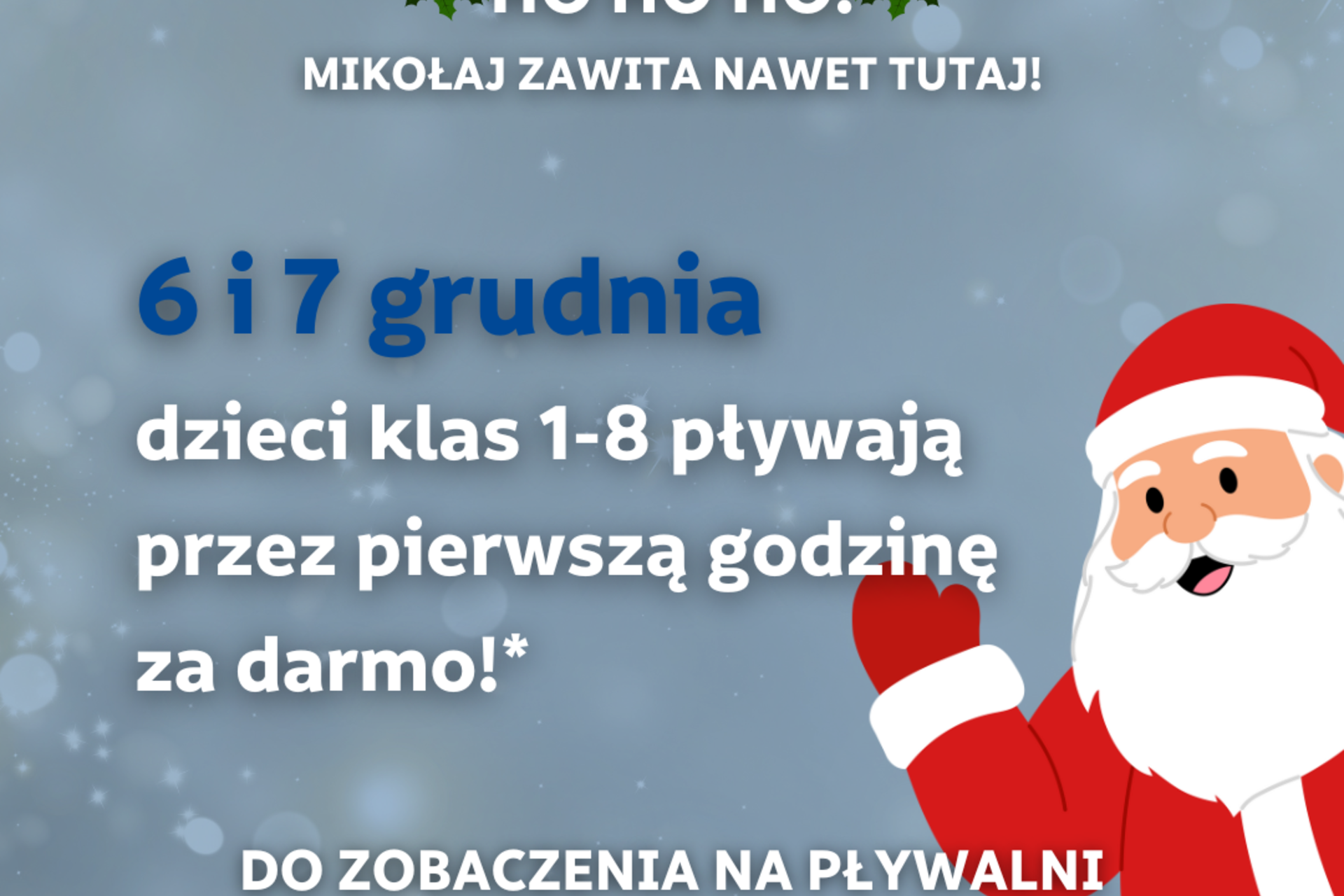 Zapraszamy do aktywnego świętowania Mikołajek i spędzenia czasu w wodzie w radosnej, zimowej atmosferze.